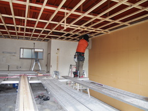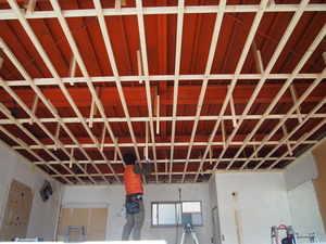 解体工事がすっかり終わっていて、天井の下地を造作中★