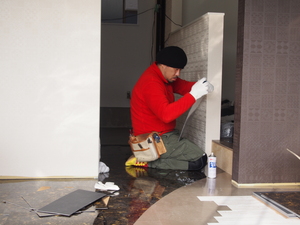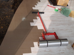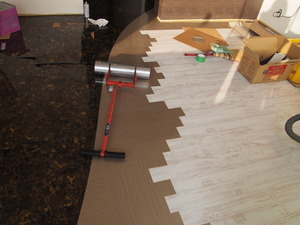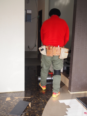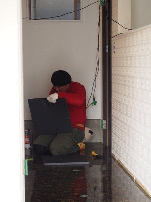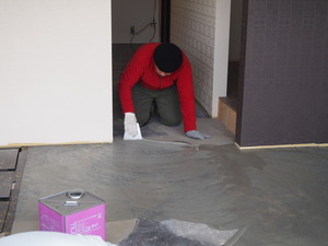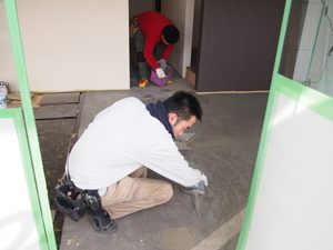 床貼りも終盤です。最後のフロアーも接着剤を塗り塗り♪