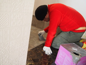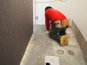 床を貼るために接着剤を付けていきます。すんごい臭いがします(>_<)