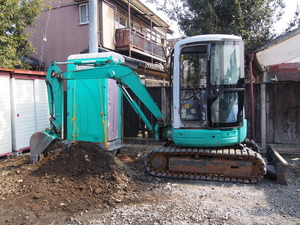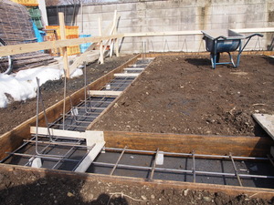 土を掘って、鉄筋を組んだ所にコンクリートを流すそうです。