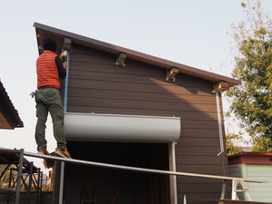 張り終わったら、外壁のつなぎ目にコーキングをしていきます。