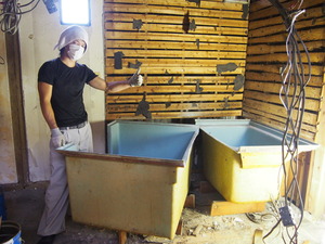 浴槽の中は、壊れたタイルで満タンになりました(+_+)