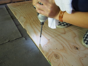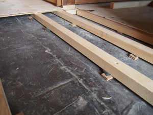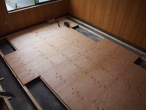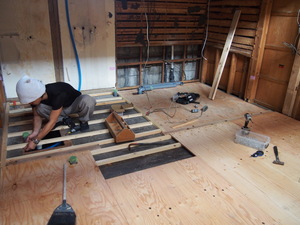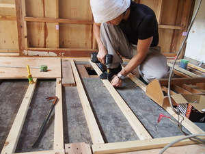 床の仕上がりを真っ直ぐにする為に、高さ調整してるんです。