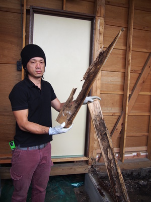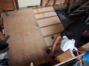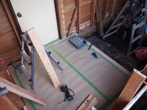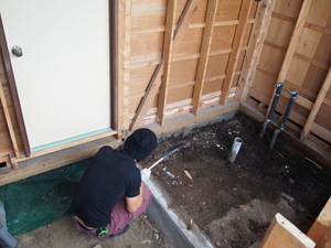 設備工事の後は、脱衣室の床を造っていきまーす。