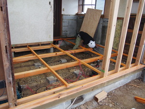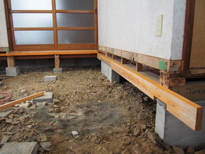木がオレンジ色になってるのは、白アリ防除剤です。