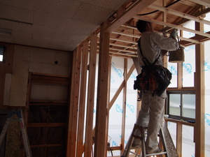 ここで、みおの大工への道~~♪断熱材をはめ込んでみおー!!