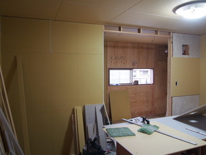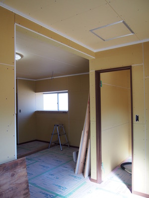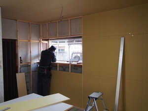 コンパネが張られたり、窓が付いたり。ここが、キッチンになります。