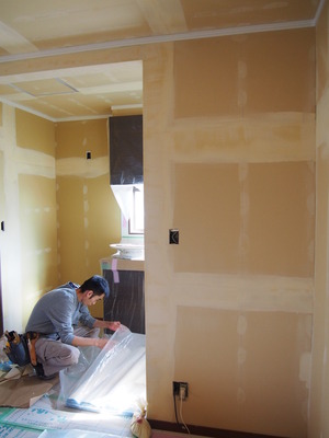 クロスを貼る前に、パテ補修ー。