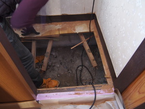 一人しか入れないスペースなので、設備工事→電気工事→解体工事と、