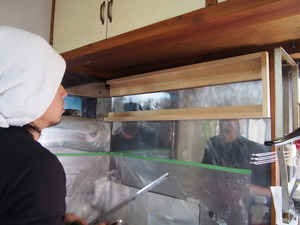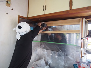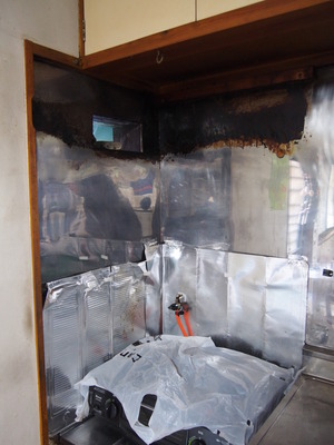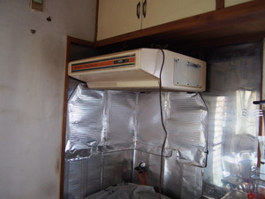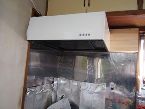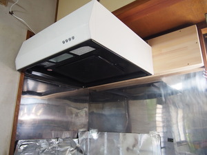 掃除の後は、壁の下地が薄かったので、きちんとレンジフードが