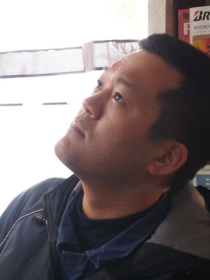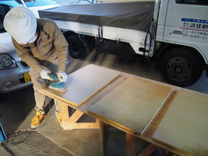 ボスが、サンダという工具で、表面を研磨しまーす!