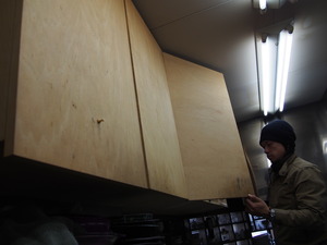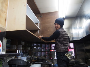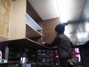 メンテナンスの終わった吊り戸棚を、元の場所へ~。
