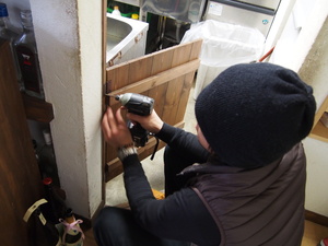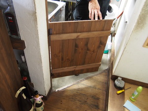 お次は、厨房への入り口に戸を新しく付けまーす。