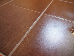 タイルとタイルの間に目地材を詰めまーす。
