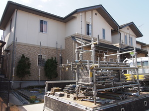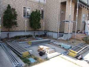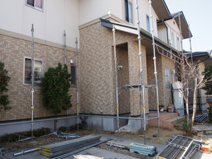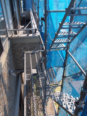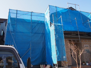 組み立て終わったら、メッシュシートをかけて、足場設置完了です☆