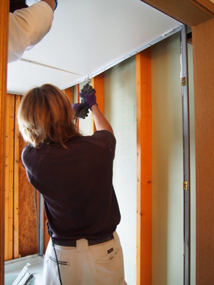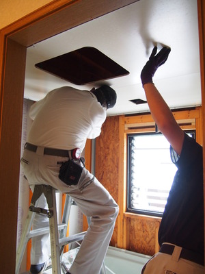 壁からパネルをどんどん外していき、天井をカット中ー。