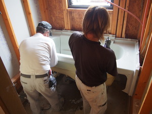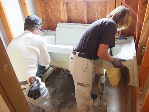 浴槽もカット~。2人で作業は早いです!!