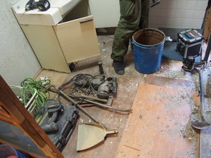 床だけ解体~。壁は、そのまま残しますよ~!!