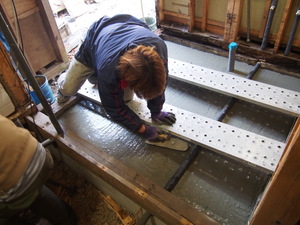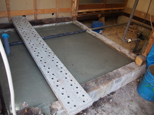 お隣の浴室部分では、生コンを流して、ならし中☆