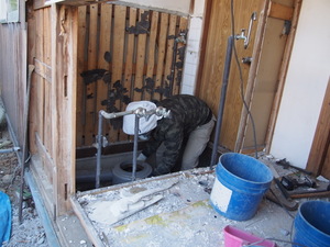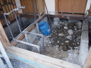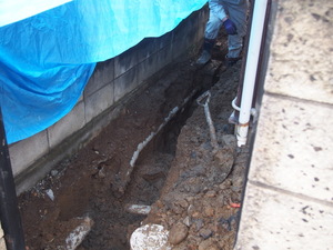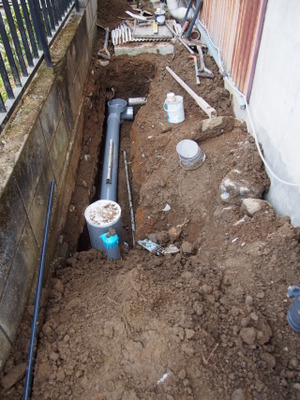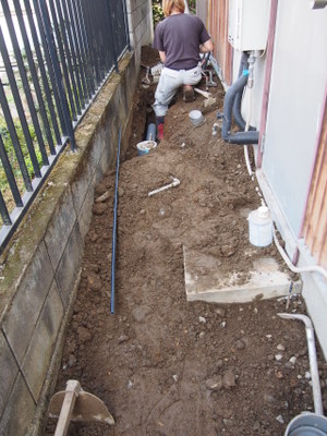 新しい配管にやり直しながら、また配管を埋めていきます。