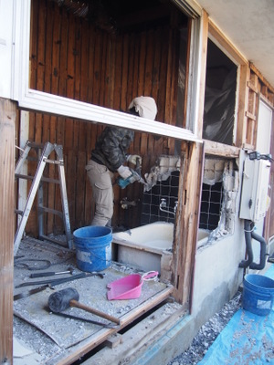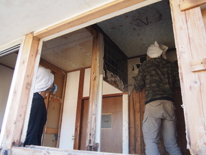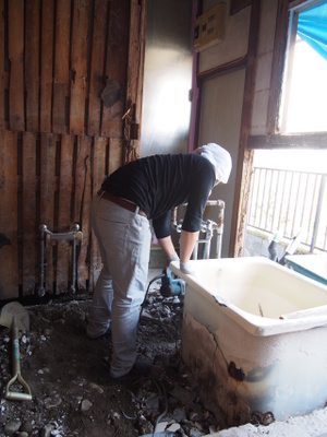 前日からの慣れない解体作業で、体中筋肉痛だそうで。