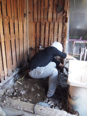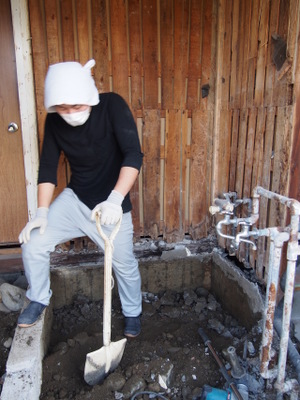 排水設備をするため土を掘り起こします。重機が入れず、手掘りしたそうです。