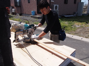 ボスに言われた寸法で、木材をカットしていく、オダカクン。