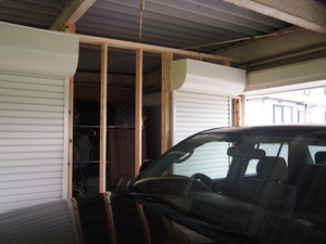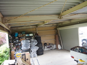 ガレージの中は、車を停めないスペースには、物がぎっしりでした。