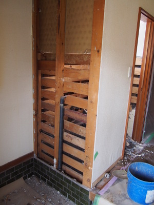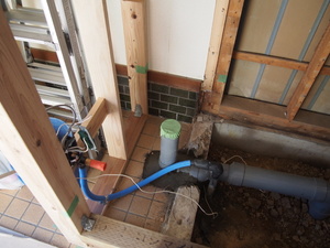 太いパイプは、新しい排水の位置。