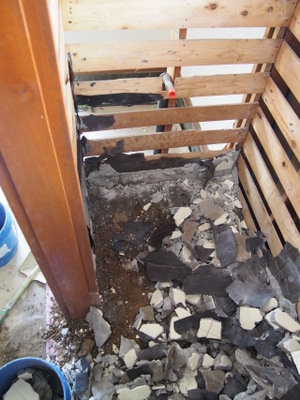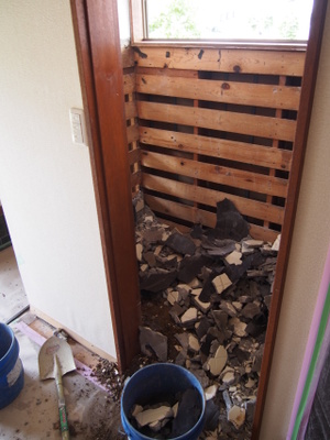 砕けたタイル…もんのすごい量…。