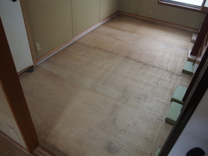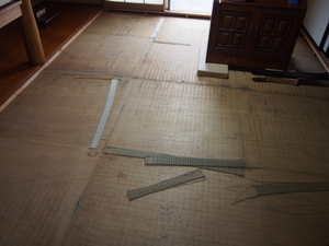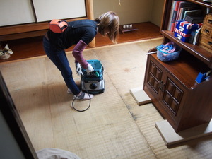 畳の上に乗ってる、家具を動かしながら、畳撤去します~。