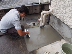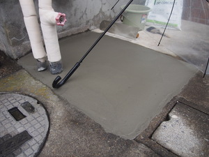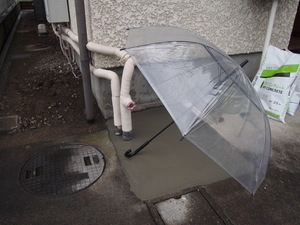 砕いた後、モルタル補修したら、小雨が\(◎o◎)/!