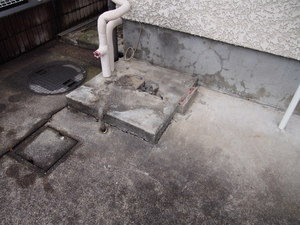 元々、給湯器が置かれてた、この微妙な高さの基礎を