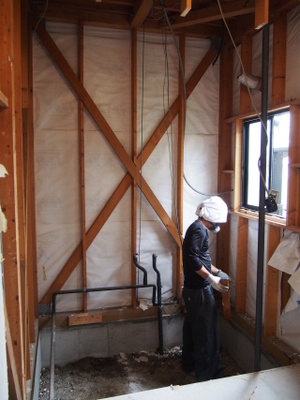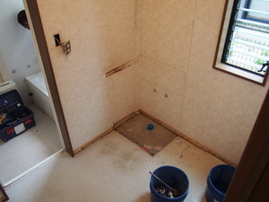 脱衣所の壁と床も、解体完了~。