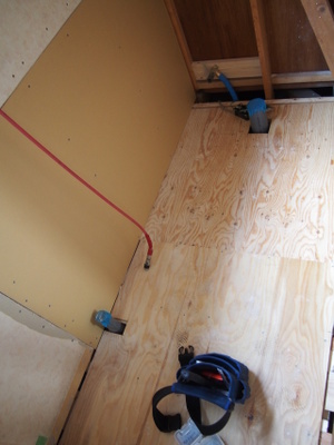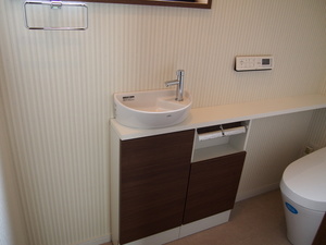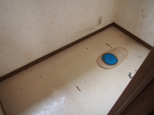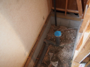 新しい便器と手洗器の位置に、配水管と給水管をやり直します。