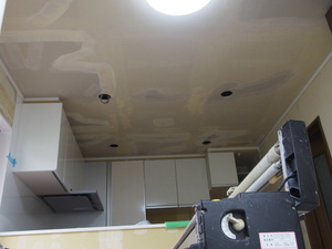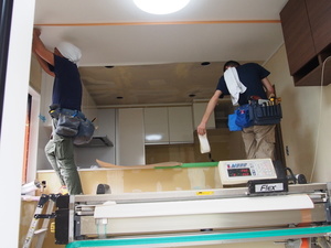 クロス貼り始めました。内装工事担当~しのっち。と、今井さん。