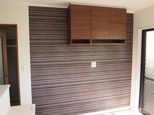 クロスのアクセント貼りの壁には、テレビが付くんですってヽ(^。^)ノ
