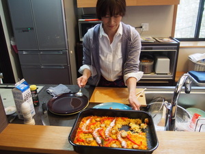 奥さんの料理姿を眺めながら、