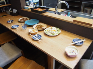 ボスとオダカクンで、造り上げた無垢材カウンター