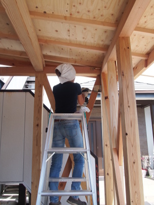断熱材を敷き詰めて!!合板張ってます☆