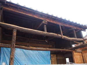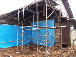 新しい柱を立てるまで足場に支えててもらいます!!