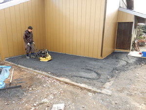 元々お部屋だった部分の地面に、砕石を敷いて固めます!!