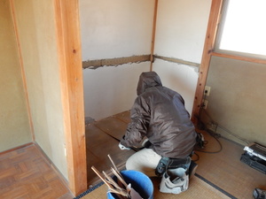 押入れの床を剥がしますー。オダカクン結構苦戦してた模様!
