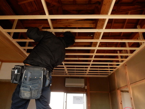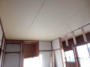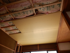 天井のボード張り☆天井にも、しっかり断熱材をいれました!!