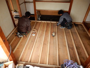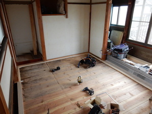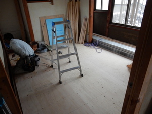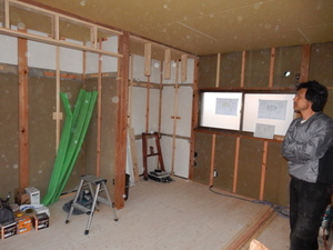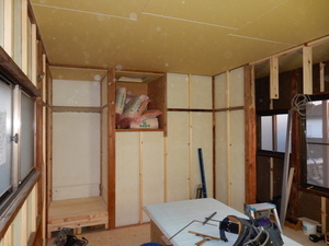 もう一部屋も、断熱材が見えてるとこに合板を張れば完成。