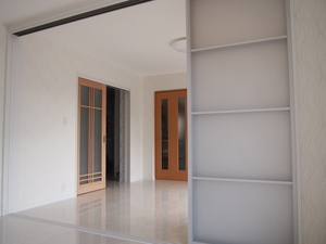 広いお部屋は、引き戸で半分に区切れこともできるんですよ☆