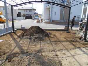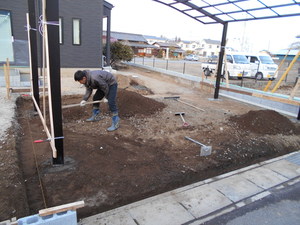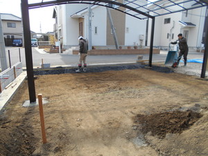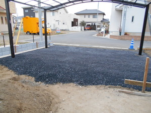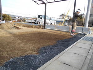 狙いを定め、ジャバーー!と砕石を敷いていく!!