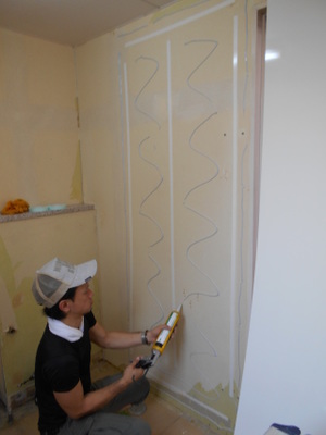 ボス。壁に両面テープと接着剤を塗り塗り。