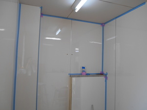 全面に張れたら、マスキングテープを貼って、コーキングの準備。
