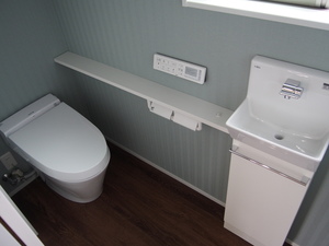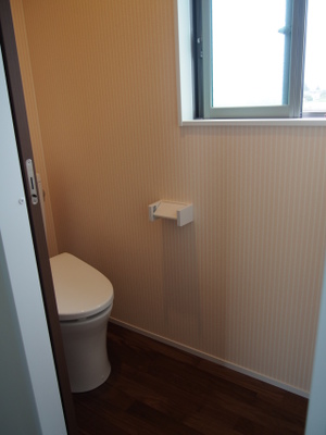 二階のトイレクロスは、可愛くピンクのストライプ♪